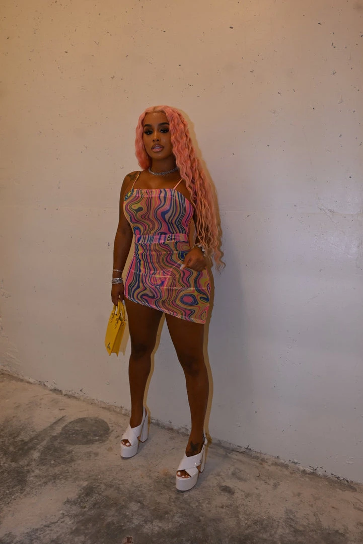 My body is work of art, it should be displayed in a Gallery. please don’t touch! this multi color dress will have you looking like a center piece for sure. this mesh dress comes with thongs.