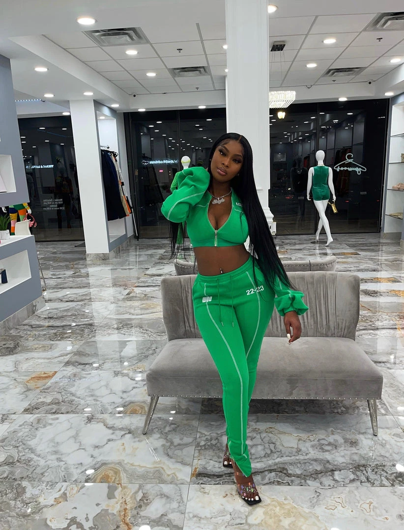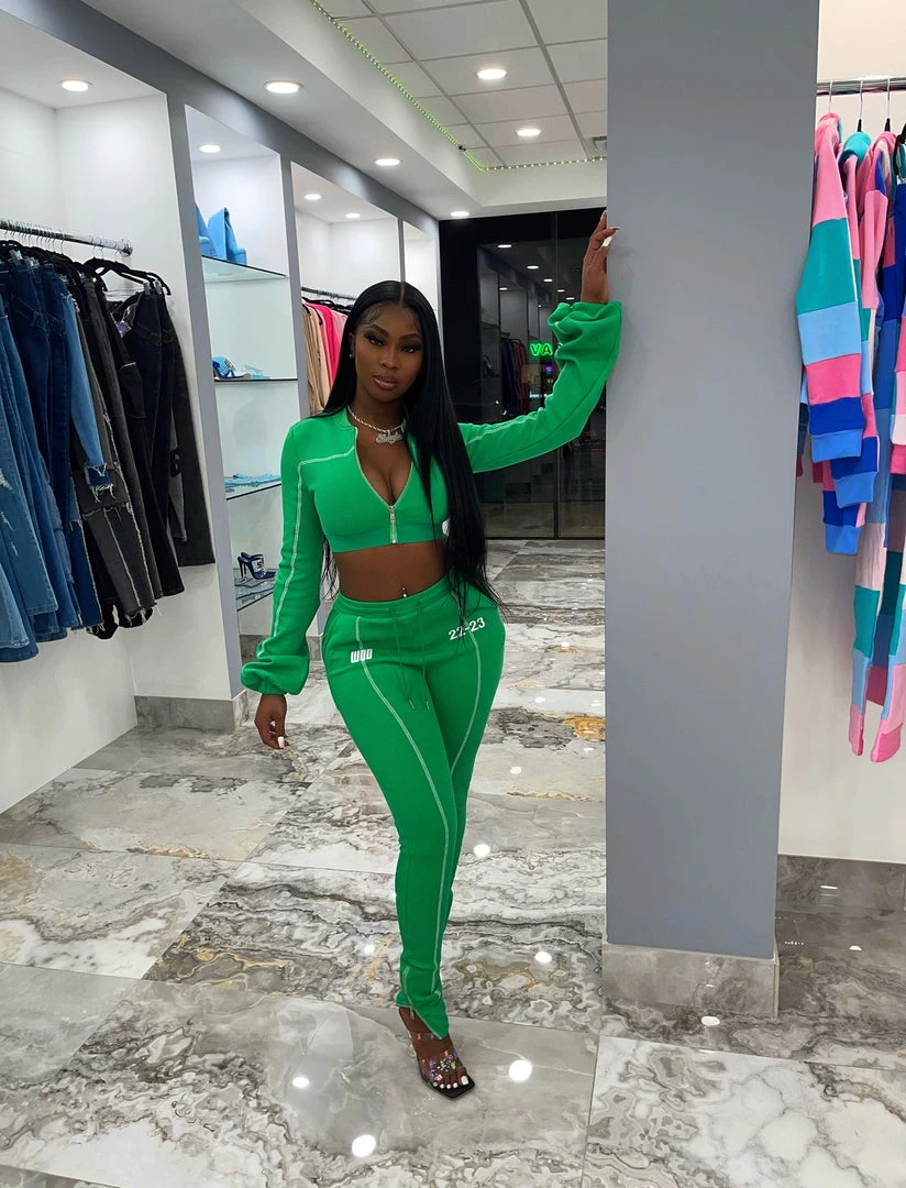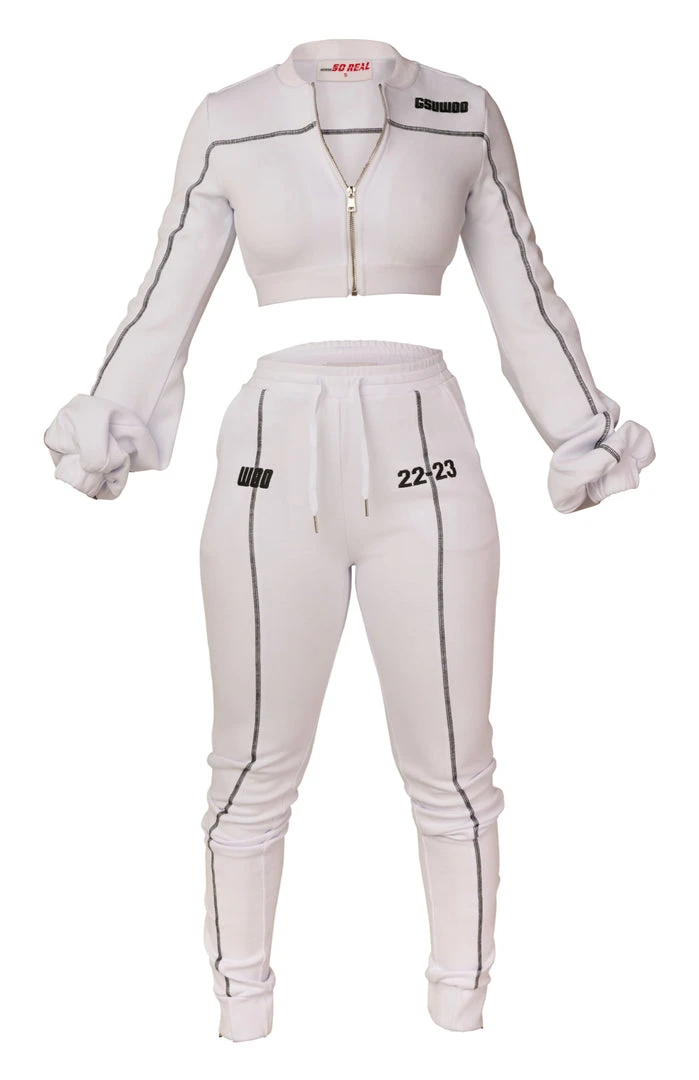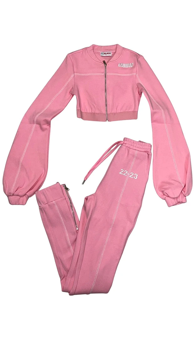 Most of our inspo comes from the 90s and this new Era Set is serving timeless. Era features a cropped extended sleeve top with an elastic band to form the shape. Accompanied with matching trousers, Era Set is stitched with a secondary color which is also emphasized by our logos.
