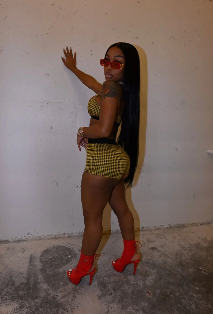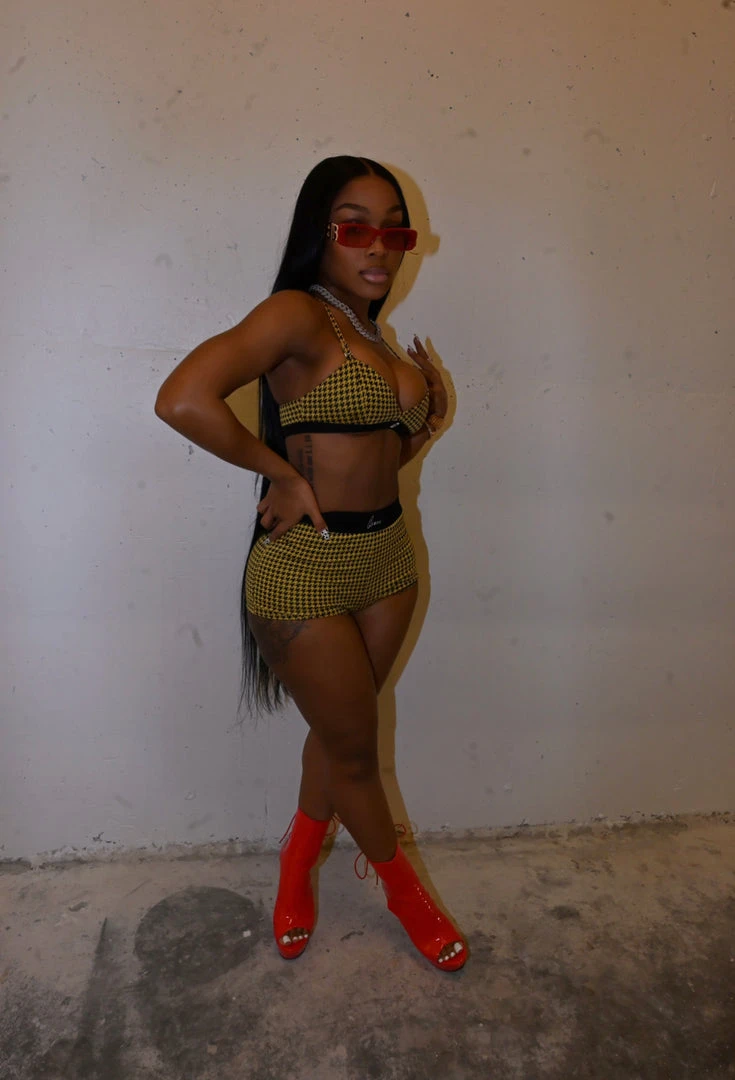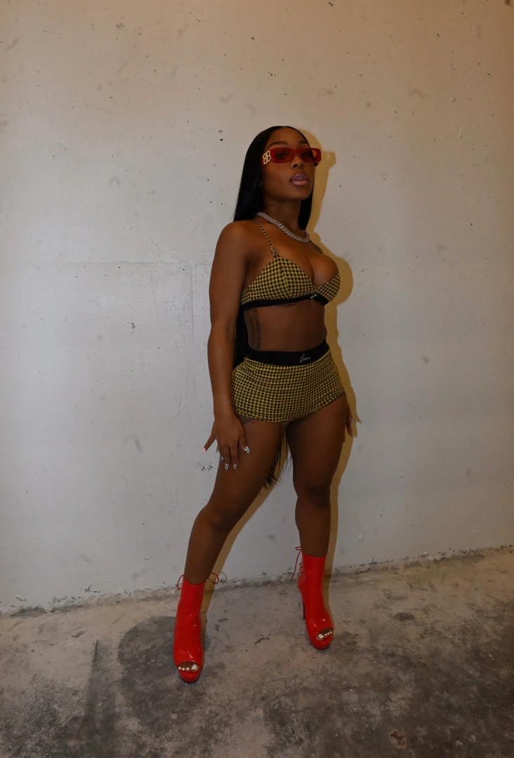 We’re taking you all the way back with this set! Our brand new GX Houndstooth set is our take on the classic Houndstooth pattern that took 80s High Fashion by storm! The GX Houndstooth comes as a set, and features a deep V neck, No sleeves, and shorts.