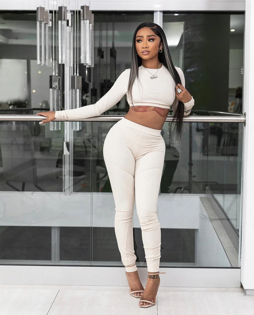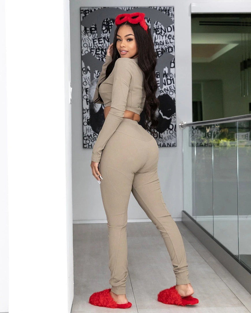What’s the jwett? Our new “Jwett is another essential we’re adding to your list. Jwett is a solid color two piece set that is detailed with body contouring outlines to exemplify your figure. This set features a crop top with logos on the sleeve and back of shirt. The bottoms features detailing that embodies panties. Jwett can be styled up or down depending on the occasion but its comfortability will amaze you.