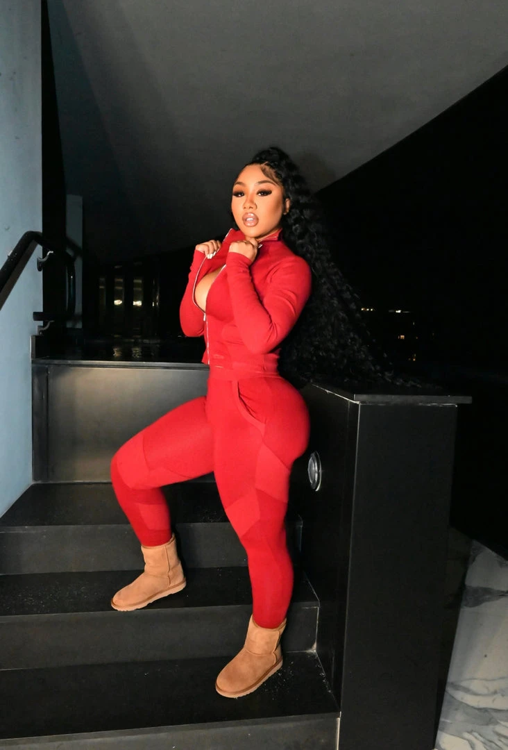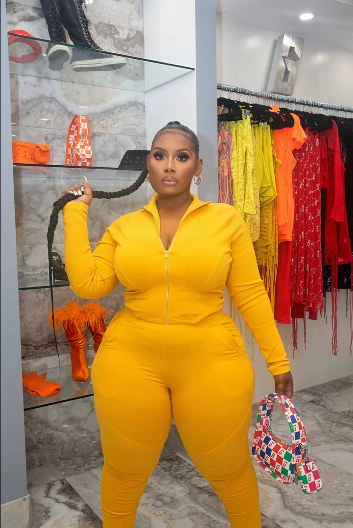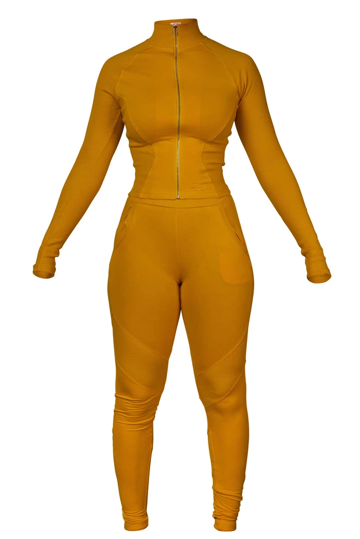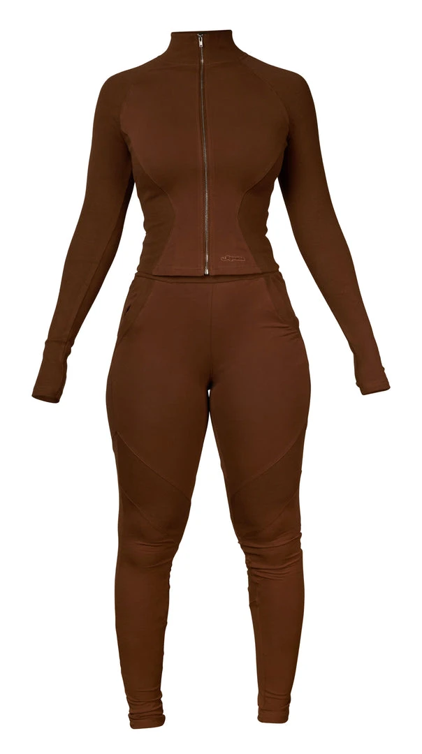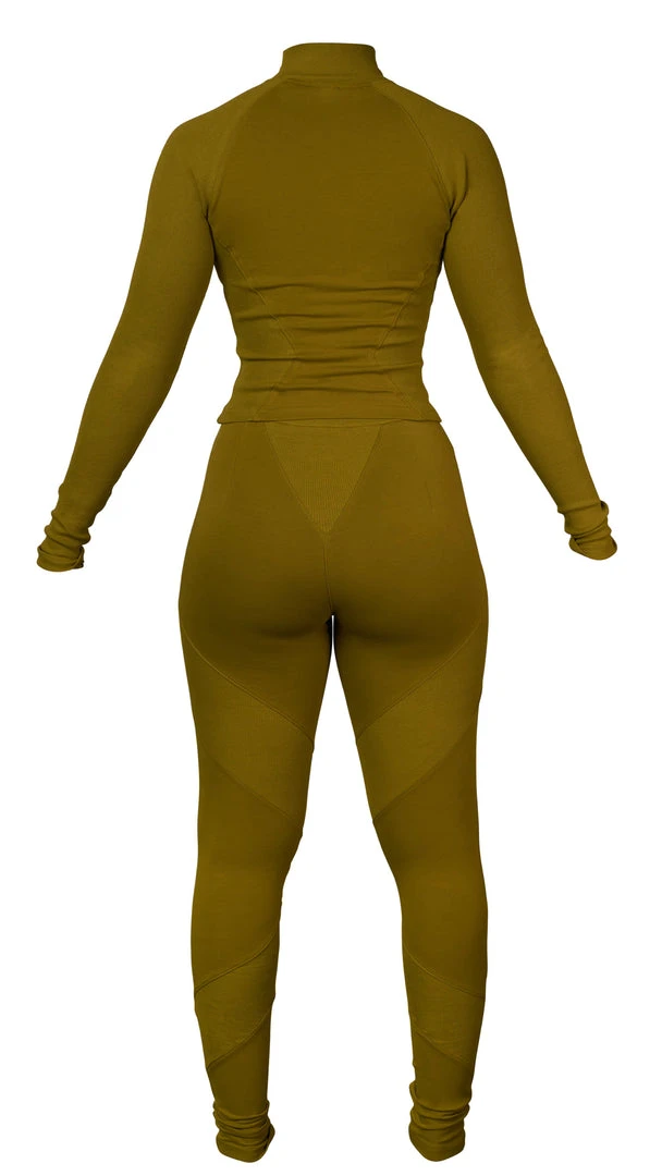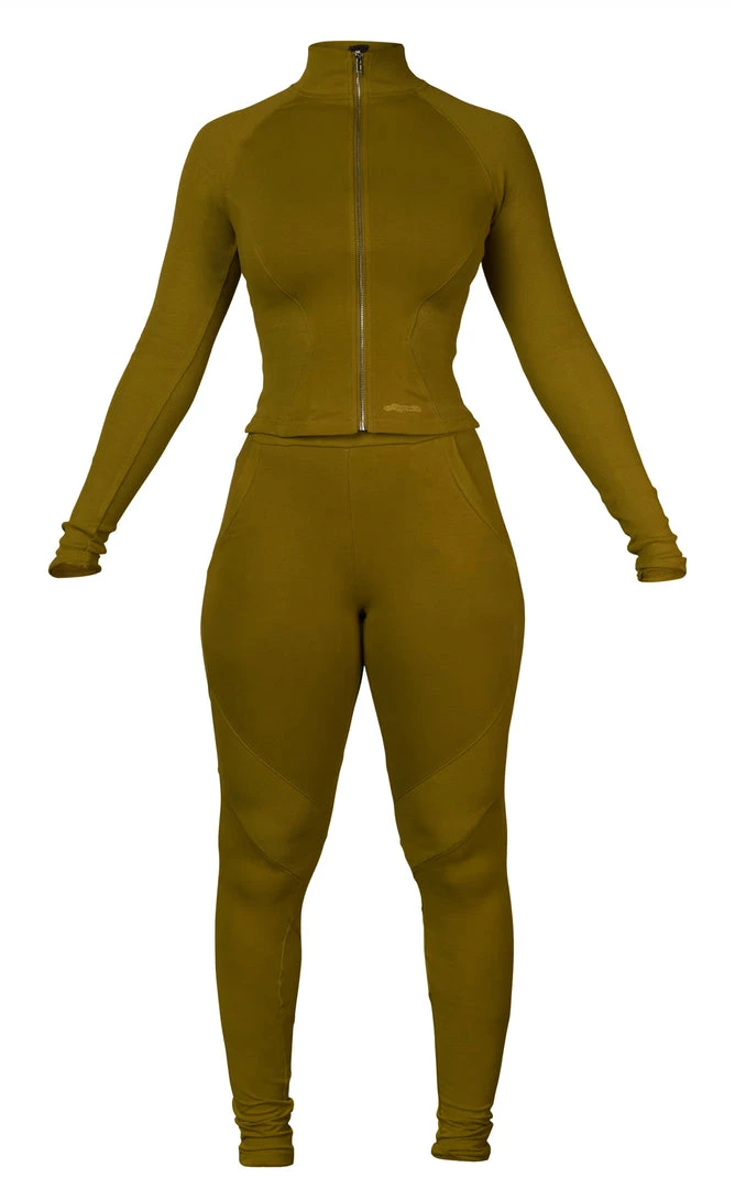 How deep I gotta dig for you to pipe down? Our new Pipe Down set is the perfect mix of comfort and sexy. This set features a slim fitted turtle neck jacket and thick leggings. The design of this set is contrasted with solid color materials including ribbed detail throughout the entire set.