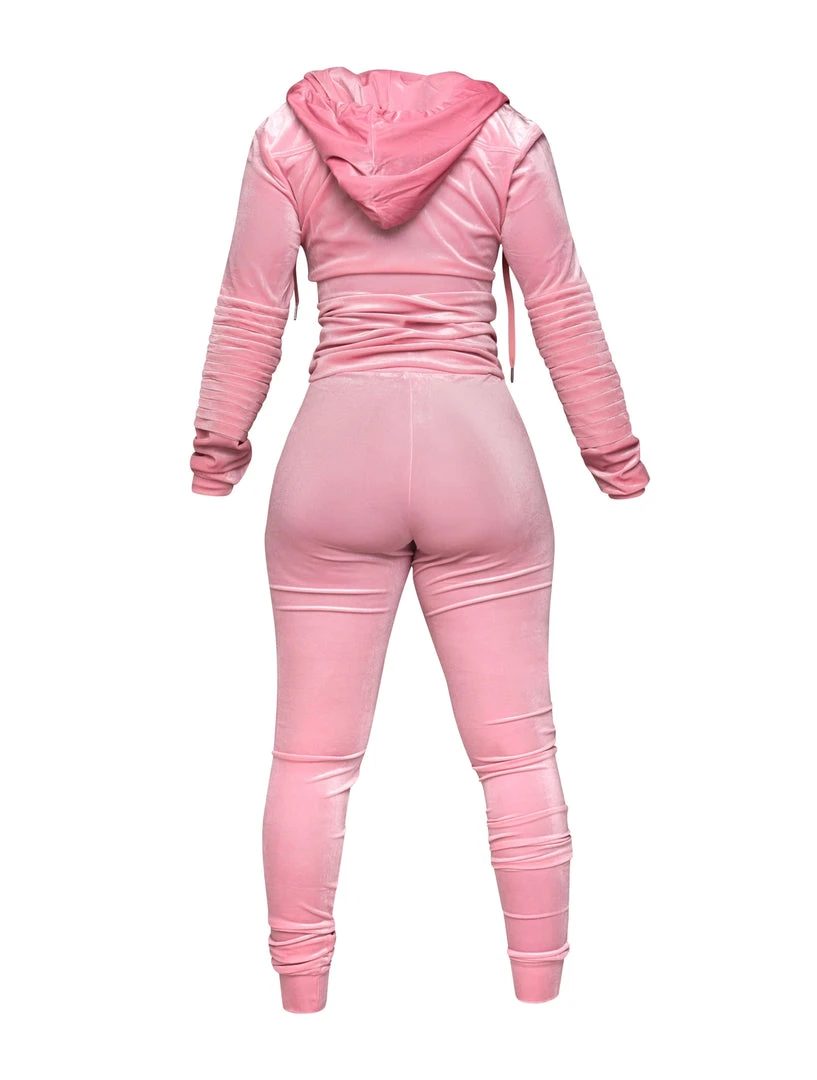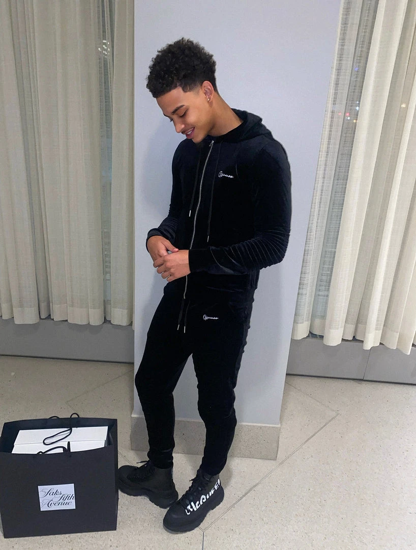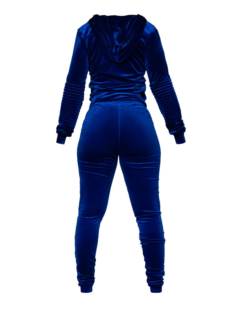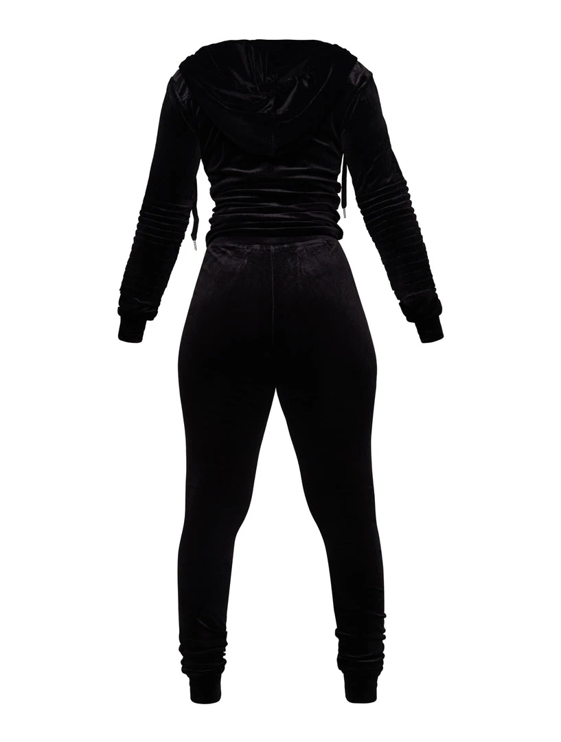 Suave is our latest velour tracksuit composed of a hoodie and matching joggers. Suave features velvet ribbed patchwork on the sleeves of jacket and on the knee area of bottoms. Our signature Gsuwoo logo is embroidered in white on the top and bottom of the set. This set can be worn by both women and men.