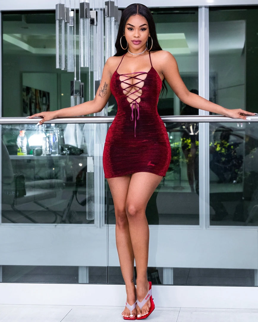 Its Showtime ladies, but don’t break a leg! If you’re looking for a dress to get you some attention then our new “Showtime” dress is the one for you. Showtime is a mini dress made with a sparkly material accompanied by velvet strings in the front and back of the dress.