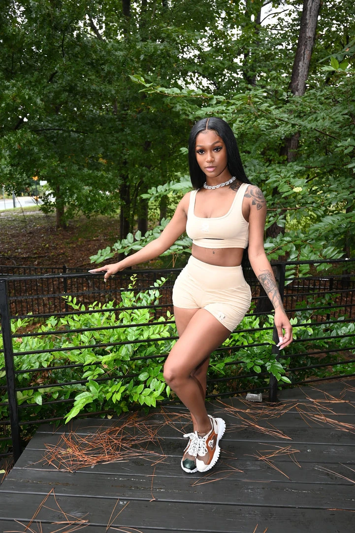 Flexin’ On Em On Purpose! Our newest two piece set features scrunched sides on the shorts & a sexy under boob slit. Flexed Up All 2020!