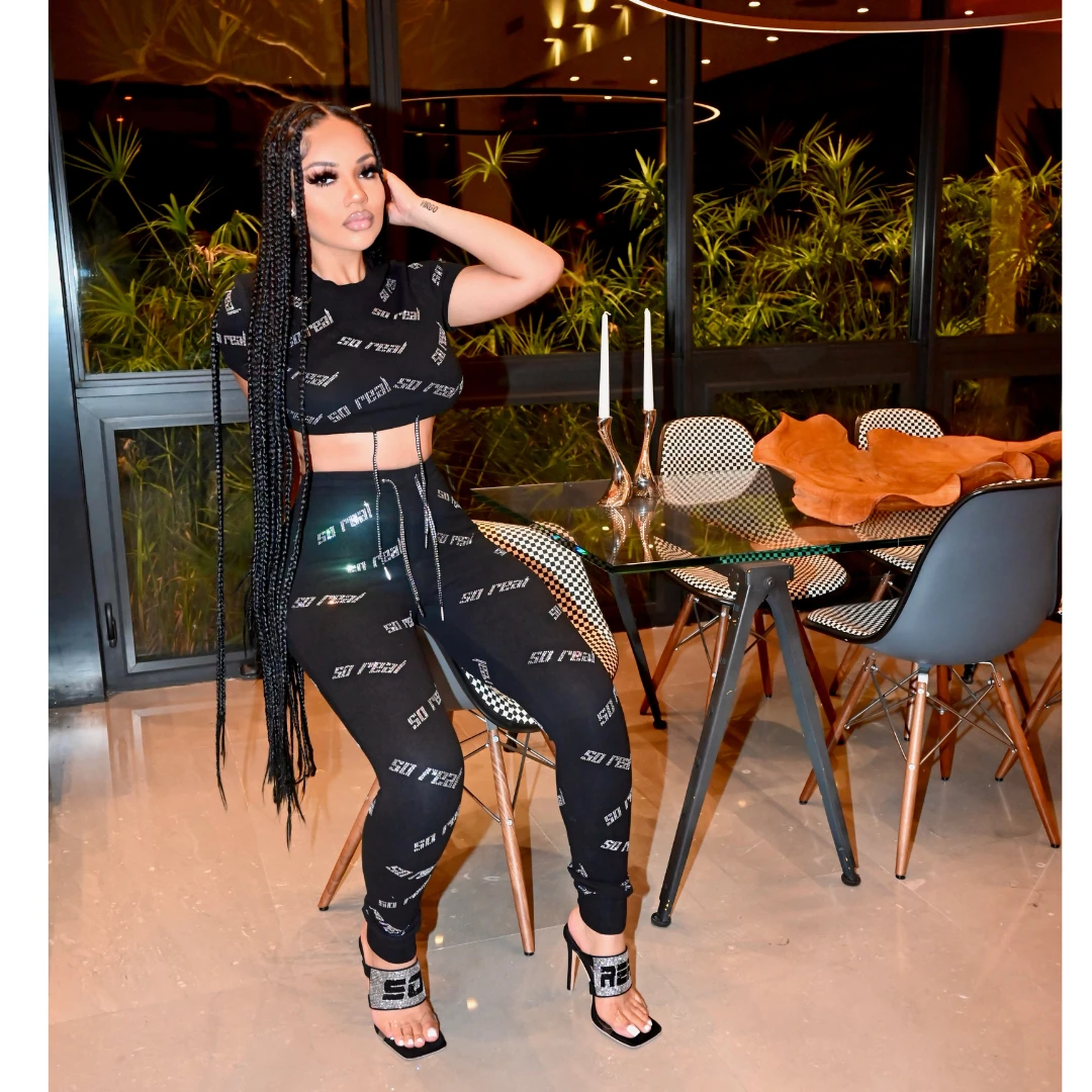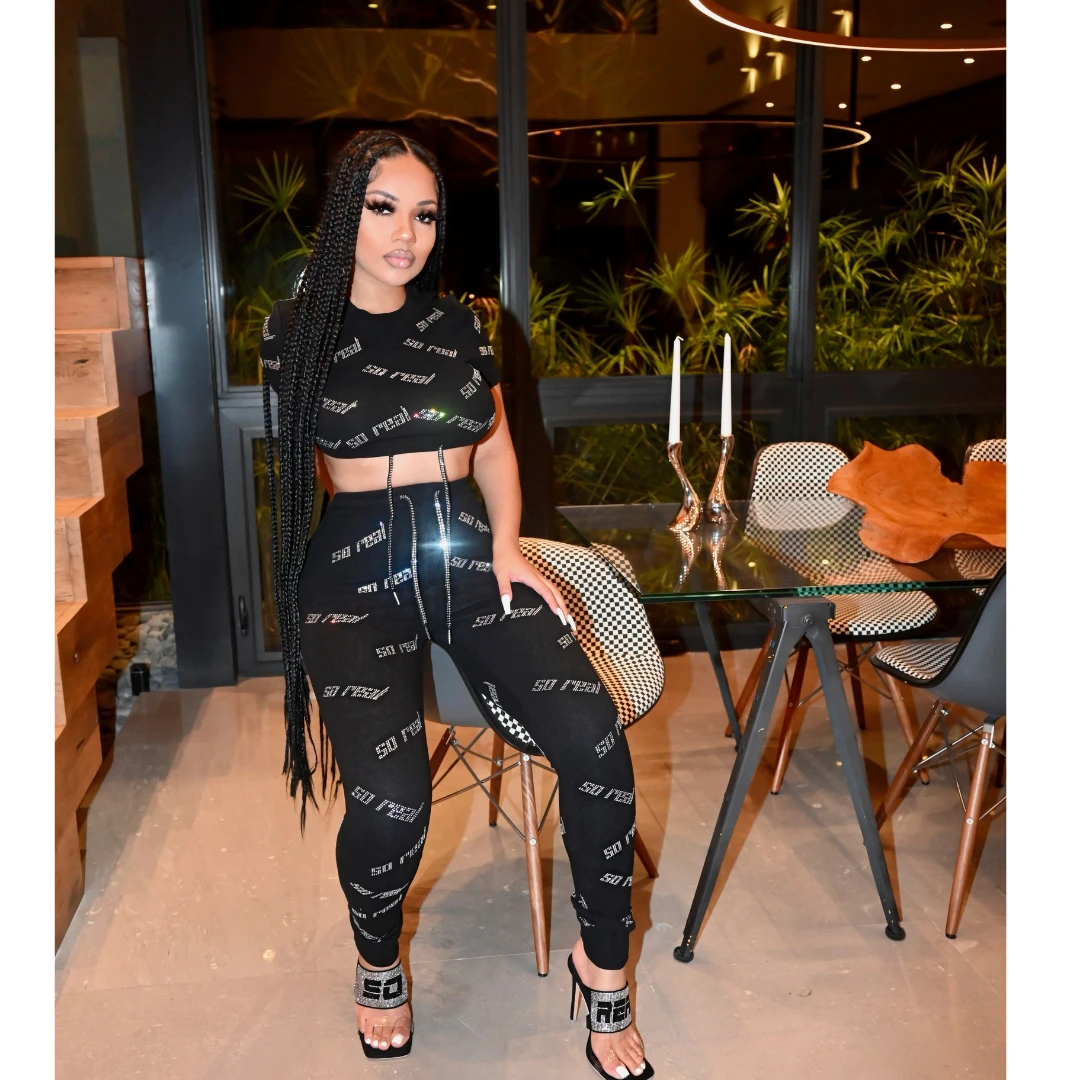 Cause I’m Icy! Step out and become a Icy girl when you wear the Solitaire set! This is taking luxury sweats to the next level! The hand placed swarovski crystals So Real monogram will dance all day and night!