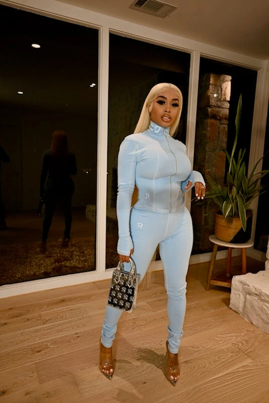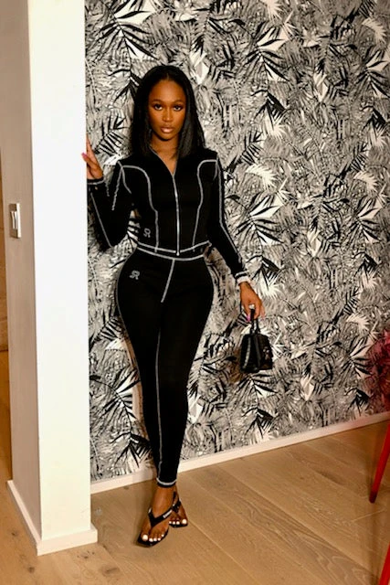Ima do your body like skin tight! Skin is in and we are here for it! Our new Skins set comes as a two piece set that made from spandex material for a tight fit. Our long sleeved top zippered top with stitched details, is also accompanied by long pants with our signature SR logo.